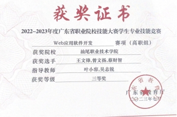 近三年员工技能大赛获得省级以上20多个奖项,参加的大赛有广东省职业院校技能大赛、蓝桥杯设计赛、粤港澳大湾区IT应用系统开发大赛等。