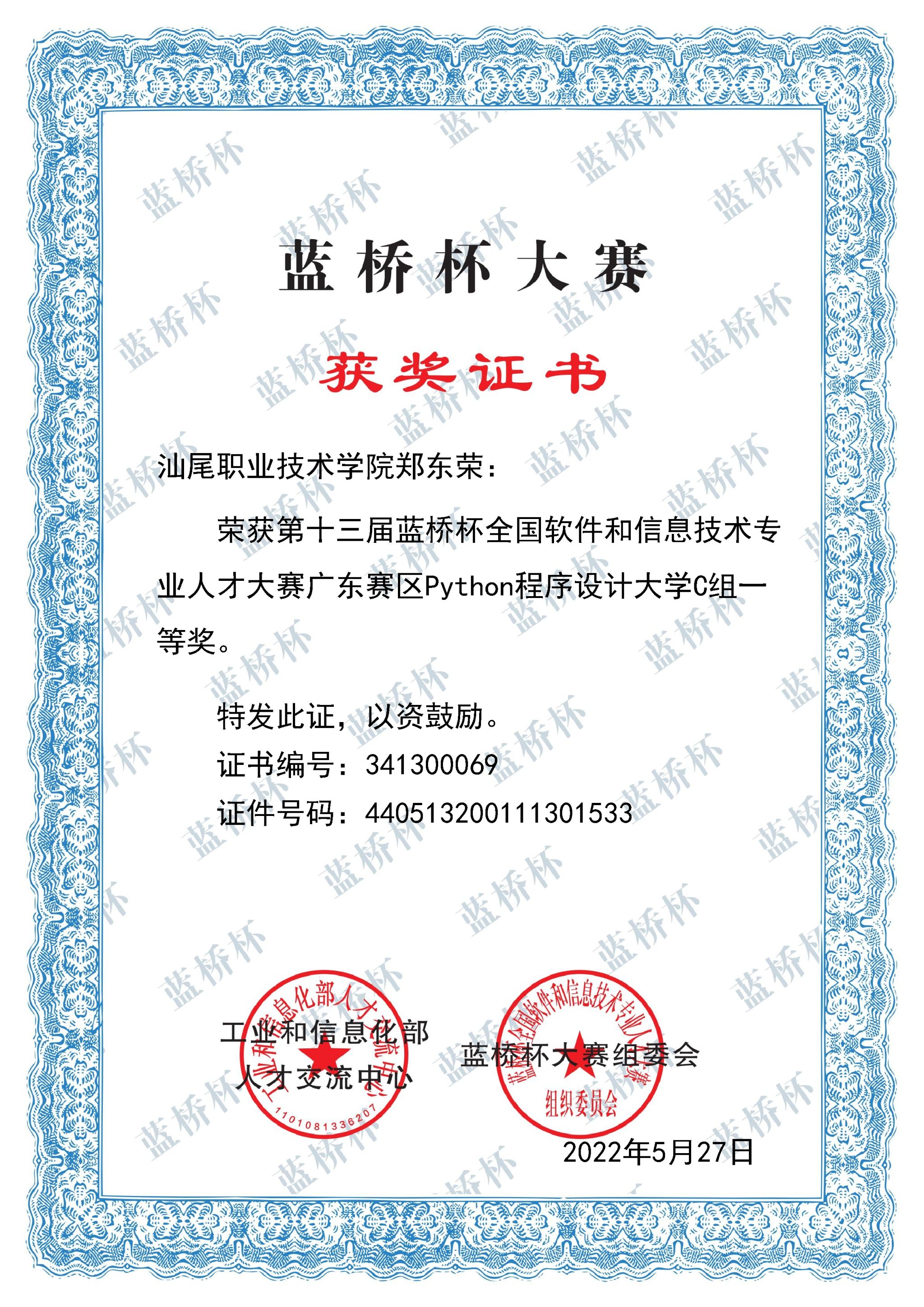 积极参加各类职业技能竞赛,获得包括一带一路暨金砖大赛之首届人工智能工程技术(边缘计算)赛项国赛二等奖、全国老员工数学建模竞赛高职高专组全国二等奖、第十三届蓝桥杯软件大赛Python程序设计全国总决赛优秀奖、第十三届蓝桥杯软件大赛Python程序设计大学C组广东省一等奖、第二届长三角数学建模竞赛专科组一等奖第一名、全国老员工数学建模竞赛高职组广东省一等奖、第二届长三角数学建模SPSSPRO创新应用奖(唯一专科院校)、广东省老员工计算机设计大赛“智慧零售”挑战赛广东省二等奖、互联网+广东省老员工创新创业大赛校赛一等奖、国家奖学金在内多项奖项。