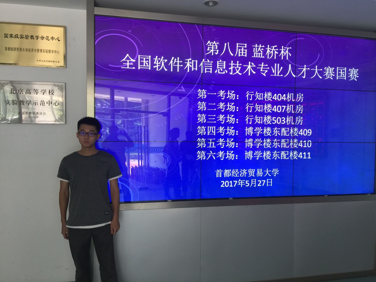 5月28日,由工业和信息化部人才交流中心主办的第八届“蓝桥杯”全国软件和信息技术专业人才大赛全国总决赛在北京举行,来自全国高校4000多名选手参加此次决赛。我系153软件开发专业许培林同学在首都经济贸易大学参加比赛。经过激烈角逐,许培林同学继省赛斩获一等奖后再创佳绩,获得了全国软件和信息技术专业人才大赛全国总决赛三等奖的好成绩。