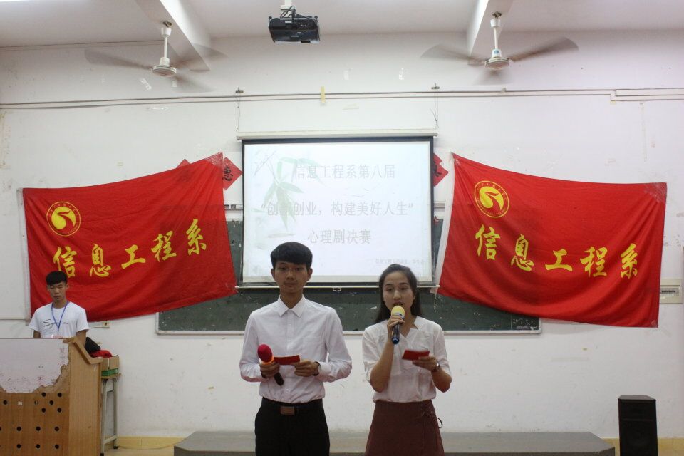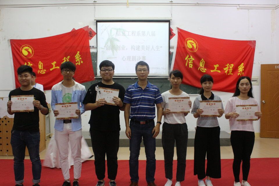 5月11日晚上19:30,我系第八届以“创新创业,创立好人生”为主题的原创心理剧大赛决赛在电教楼108举行。本次出席的评委有汕尾市中小学心理健康教育指导中心副主任、艺术与设计系教育学教研室主任黄永成老师,我系陈铿锵主任,艺术与设计系何建平老师,我系辅导员蓝蔚老师。