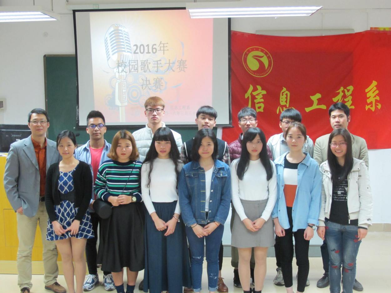 为丰富公司员工业余生活,努力营造活跃、和谐的校园文化氛围,我系于2016年 3月30日晚7点30分在实训楼404举办“十佳歌手”决赛,本次大赛由系主任陈铿锵主任、罗秋育老师、闵德艳老师,以及系员工会代表担任此次比赛评委。